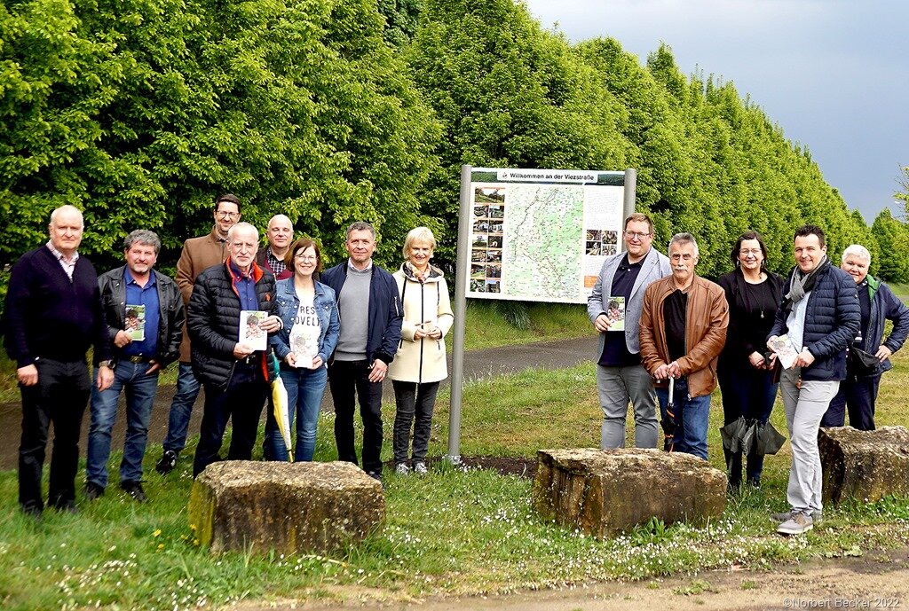 Zur Eröffnung der neuen Viezstraßen-Saison, die in vergangenen beiden Jahren unter der Pandemie litt und auch immer noch nicht auf vollen Touren laufen kann sowie der Präsentation der neuen Viezstraße-Erlebniskarte begrüßte der Vorsitzende des Vereins Viezstraße e.V., Wolfgang Schmitt, Mitglieder und weitere Gäste im Historischen Bahnhof der Partnergemeinde Beckingen. Unter ihnen waren neben der Gründerin des Viezstraßevereins und Ehrenvorsitzende Irmtraud Engeldinger, Geschäftsführer Peter Klein von der Saarschleifen Tourismus GmbH, Schmitt berichete, dass,die Viezstraße, die in diesem Jahr 25 Jahre alt wird, eine geänderte Route erhalten hat. Sie soll wieder mehr wahrgenommen werden, dazu soll die neue Erlebniskarte breitragen. Gleichermaßen ist ein Programm mit kreativen Angeboten geplant. Hierzu gehören dezentrale